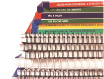 7. Booklet (Saddle Stitching)is a highly inexpensive way of binding. It is bound with 2 staples in the middle of the folded edge. It is commonly used for catalogs, newsletters, manuals and catalogs.