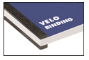 3. Velo (Strip) Binding is commonly used for legal documents and reports. A plastic comb is inserted in the holes, and then sealed with a thin plastic strip for a tough binding support so that pages cannot be removed. This binding style looks decent, but does not open flat. It holds up to 450 sheets of 20lbs paper.