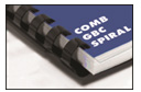 4. Spiral (Comb) Binding is one of the most popular styles. It offers utmost flexibility by being able to easily add or delete pages with a simple rebind, of a book. The Spine of the plastic can be easily customized by printing to meet your specific needs (for volume books). It holds up to 425 sheets of 20lbs paper.